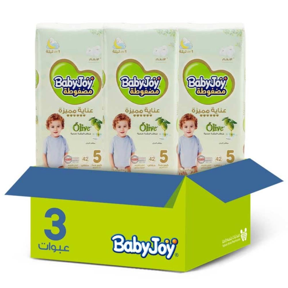 كرتون بيبي جوي حفاضات اطفال اوليف بزيت الزيتون مقاس [5] 42 حبة*3 عبوات |بوكس التوفير