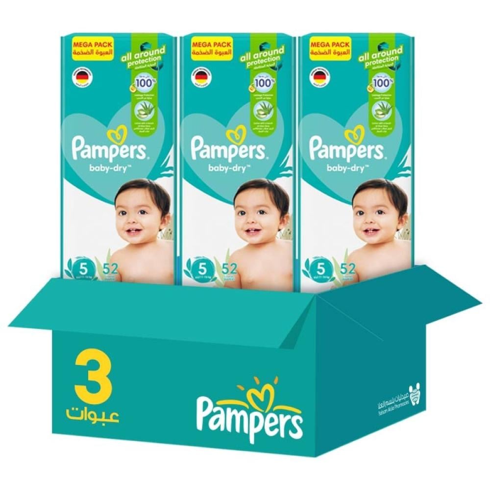 بامبرز حفاضات اطفال العبوة الضخمة مقاس 5 52 حبة * 3 عبوات | بوكس التوفير