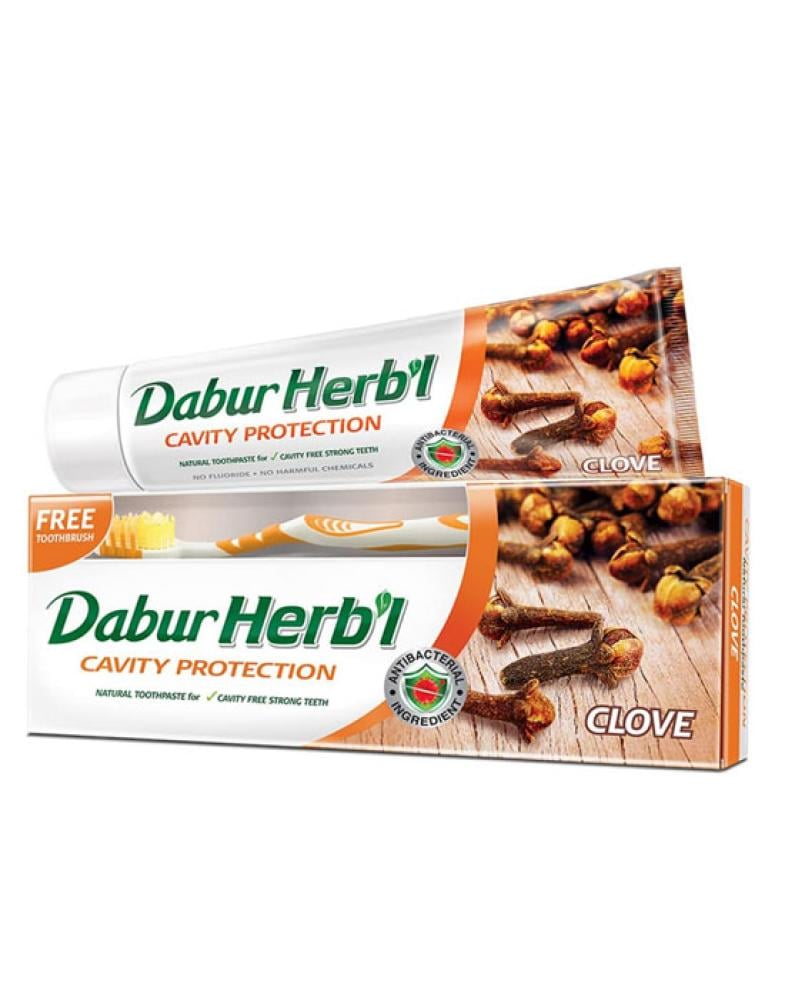 - يأتي معجون الأسنان بالقرنفل العشبي للحماية من التسوس من دابور مع فوائد القرنفل الطبيعي الذي يساعد على حماية أسناننا من التسوس.