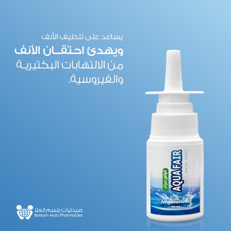 - يعتبر بخاخ الأنف المالح من اكوافير منتجًا طبيًا يتكون من محلول يهدئ احتقان الأنف من الالتهابات البكتيرية والفيروسية والتهاب الجيوب الأنفية ونزلات البرد.