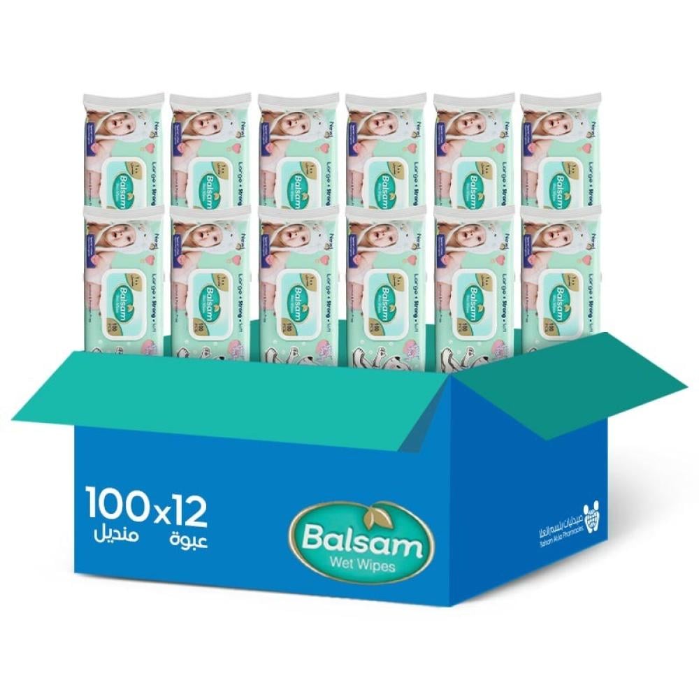 كرتون بلسم مناديل أطفال خالية من العطور للبشرة الحساسة 100 منديل × 12 عبوة | بوكس التوفير