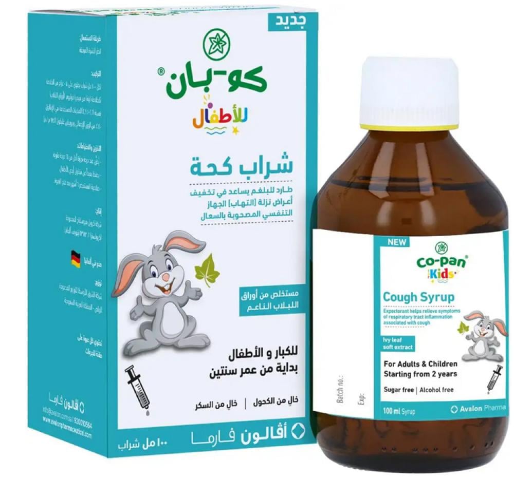 - كو-بان هو شراب الكحة العشبي الوحيد الذي تمت الموافقة عليه من قبل الهيئة العامة للغذاء والدواء خصيصًا للأطفال الذين تتراوح أعمارهم بين عامين وستة أعوام.