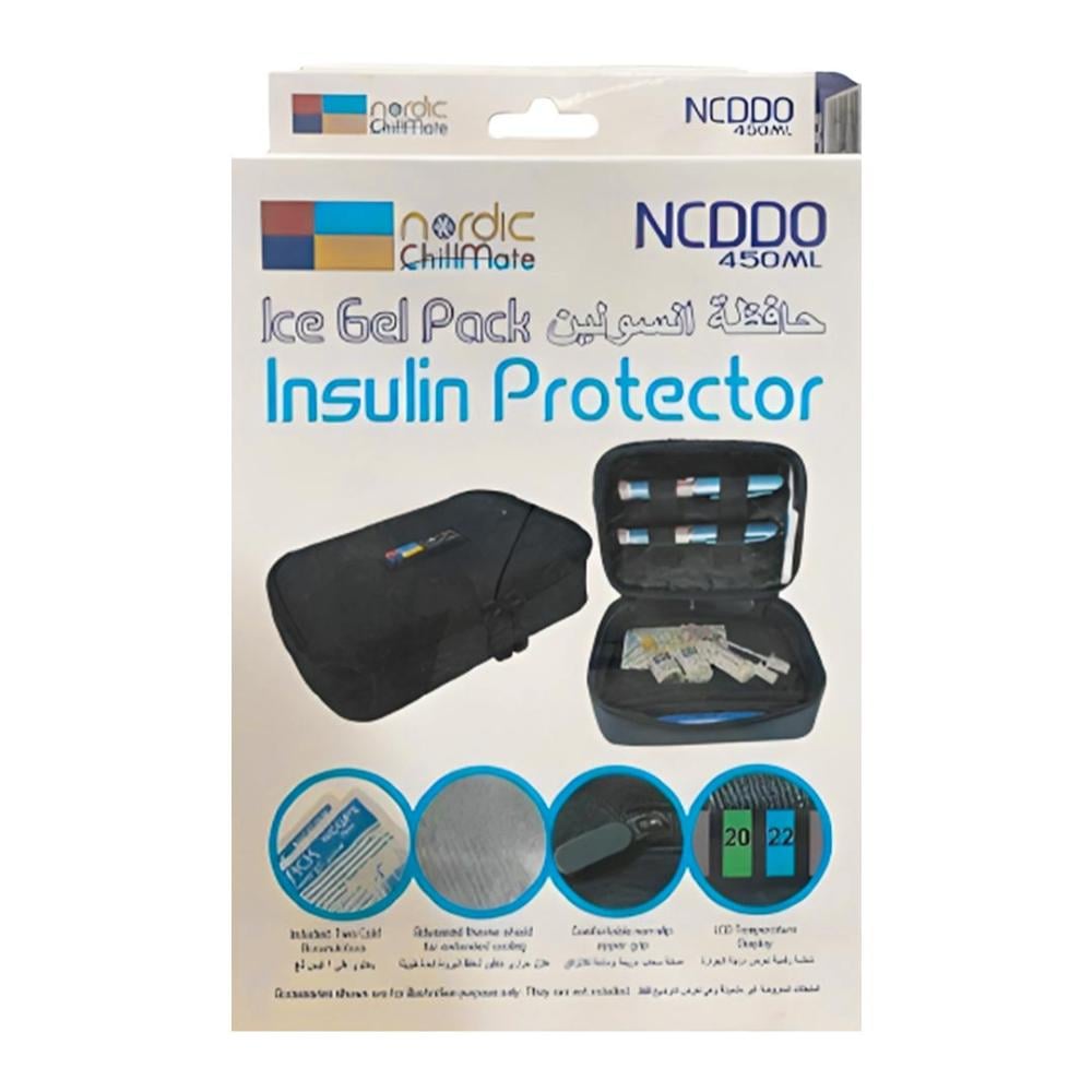 مصنوعة من حاجز واقي عازل للحرارة بالإضافة الى كيس ثلجي هذا سوف يحمي الانسولين وغيرها من المنتجات المماثلة من التلف عن طريق التعرض لارتفاع درجة الحرارة