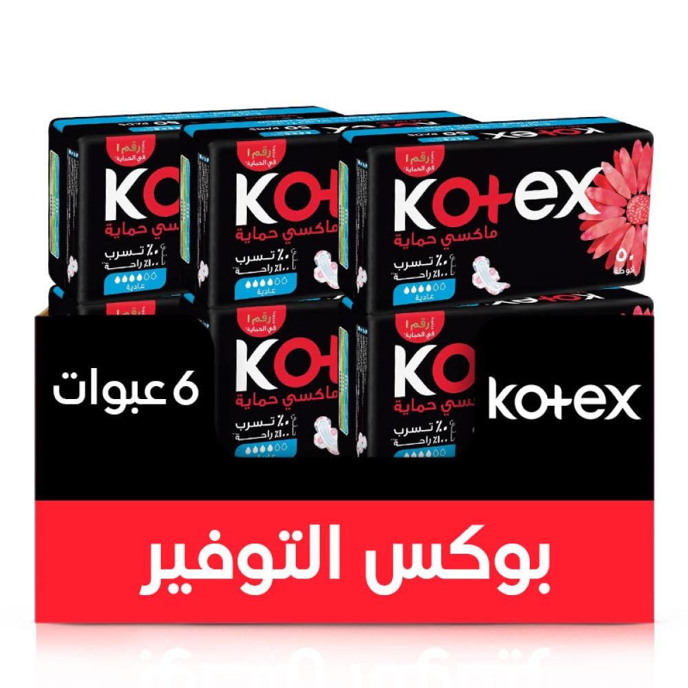 كرتون كوتكس فوط صحية ماكسي عادية بالاجنحة 50 حبة*6 عبوات |بوكس التوفير