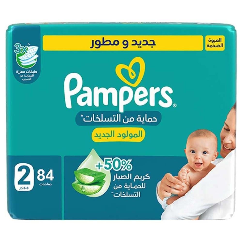- حفاضات بامبرز مزودة بشريط لاصق وطبقة إضافية من لوشن الألوفيرا تقدم فوائد ترطيب إضافية لحماية بشرة أطفالك من الطفح الجلدي.