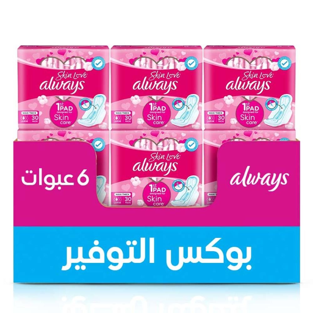- كرتون أولويز، فوط نسائية، بإحساس نعومة القطن، ماكسي سميكة، بالأجنحة - 30 قطع | 6 عبوات