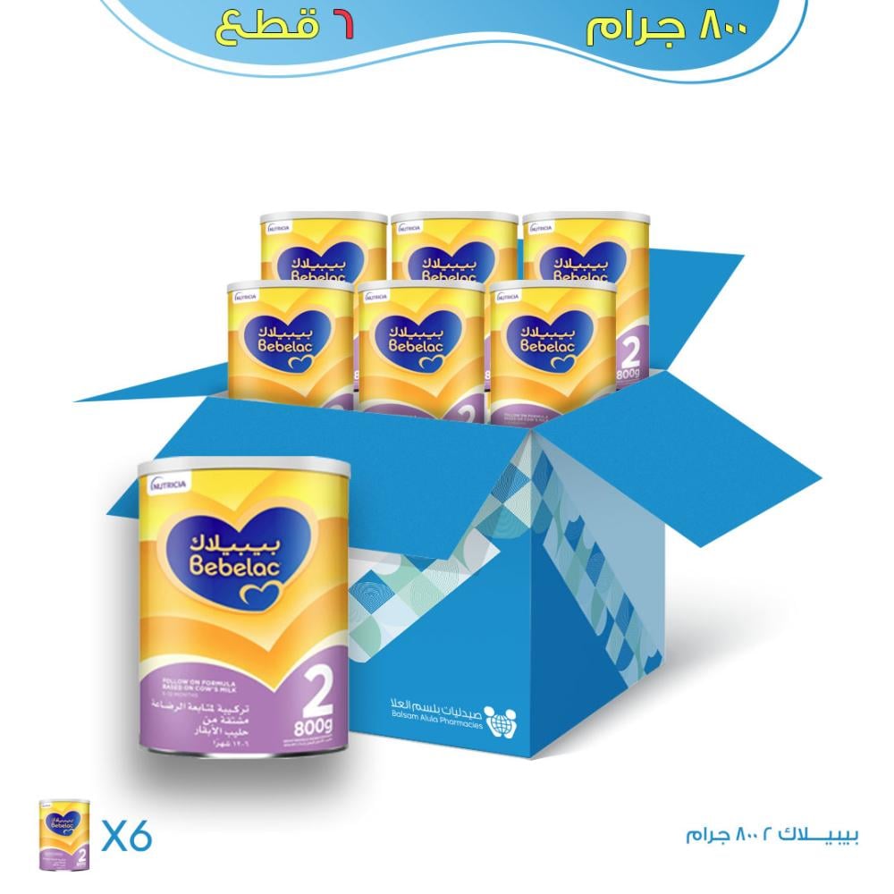 كرتون بيبيلاك 2 حليب أطفال المرحلة الثانية من عمر 6 شهور وحتى سنة - 6 × 800 جم | عبوة التوفير