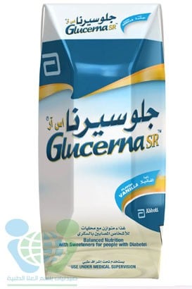 جلوسيرنا- اس ار حليب سائل فانيلا (للأشخاص المصابين بالسكري) 200 مل: منتج غذائي بديل للوجبات، مخصص لمرضى السكر، غني بالألياف ومخفض الكربوهيدرات لمن يعانون من عدم تحمل الجلوكوز. يحتوي على مزيج فريد من الكربوهيدرات بطيئة الاحتراق لزيادة النشاط وتقليل آلام الجوع.