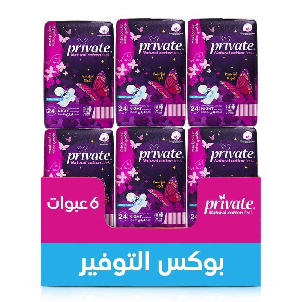 - الفوطة الصحية برايفت ماكسي بوكيت - ليلي 24 فوطة *6 عبوات | عبوة التوفير