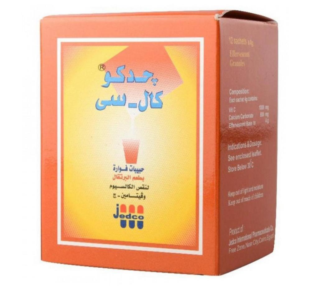 جدكو كال سي يحتوي على فيتامين ج وعنصر الكالسيوم، وهذا ما يجعله مكملًا غذائيًا مهمًا يحمي الجسم من مخاطر نقص هذين العنصرين المهمين