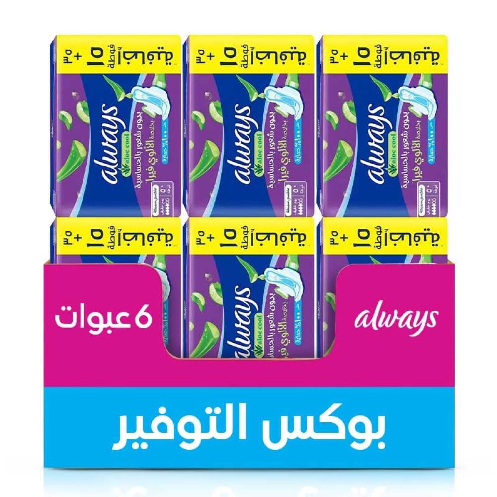 - إن فوط أولويز ألوي كول الصحية تضمن لكِ صفر شعور بالحساسية وحماية من التسرب حتى ١٠٠٪ لتنعمي بالراحة، والحماية، والانتعاش طوال اليوم.