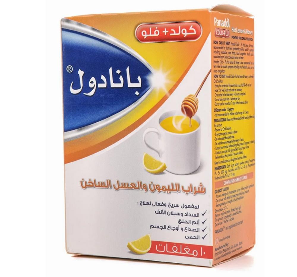 كيس بانادول كولد اند فلو بالليمون والعسل الساخن هو العلاج الساخن الذي يجمع بين المذاق الرائع لليمون والعسل مع تركيبة بانادول الخاصة.