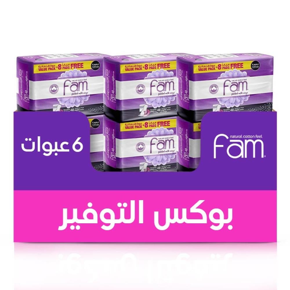 - فوط فام الصحية المطوية الماكسي بالأجنحة مصممة بجزء علوي بملمس قطني ناعم للحصول على أقصى نعومة وراحة.