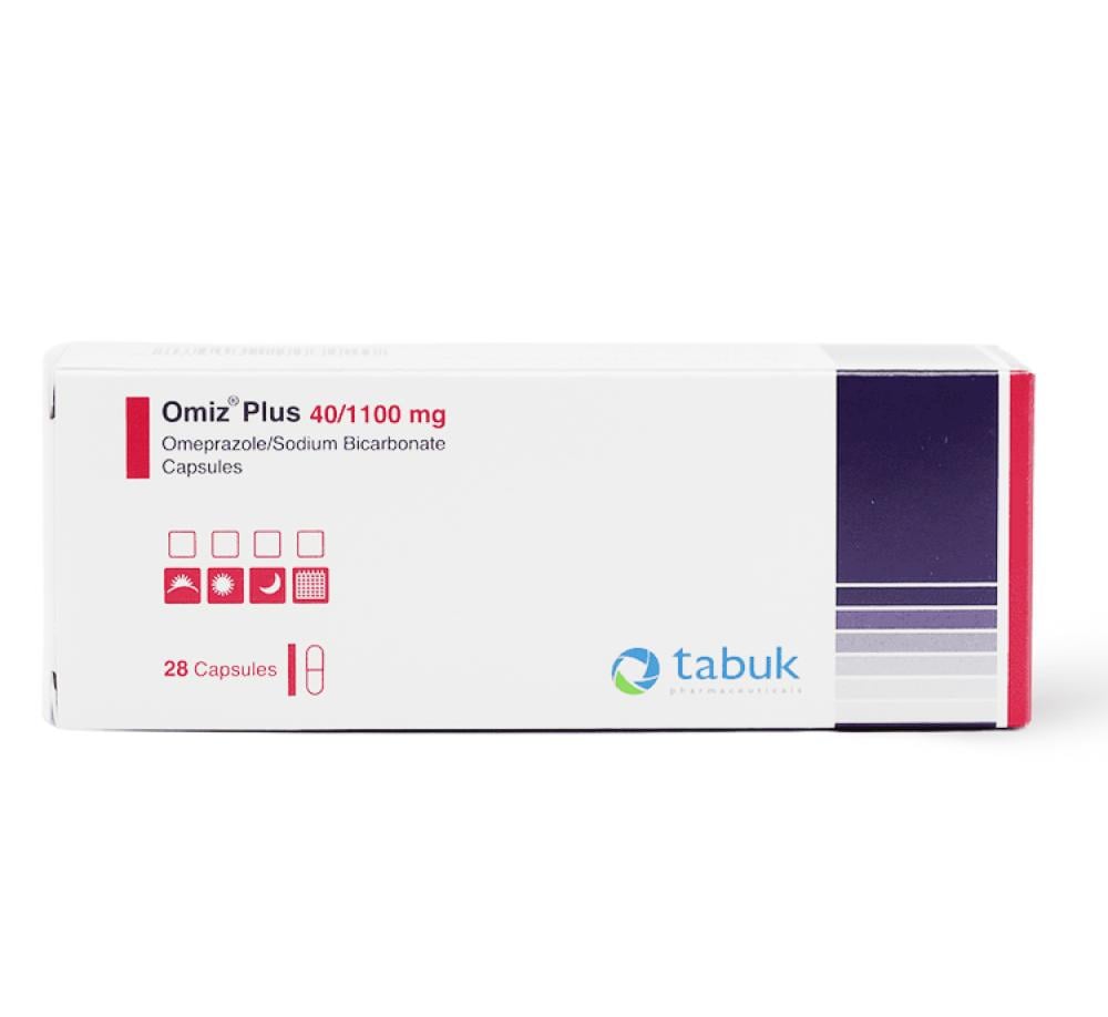 - أوميبرازول 40 مجم + بيكربونات الصوديوم 1100 مجم كبسول