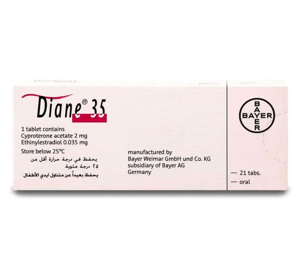 - Diane 35 Tablet 21 عبارة عن مزيج من عقارين هرمونيين ، إيثينيل إستراديول ، وسيبروتيرون.