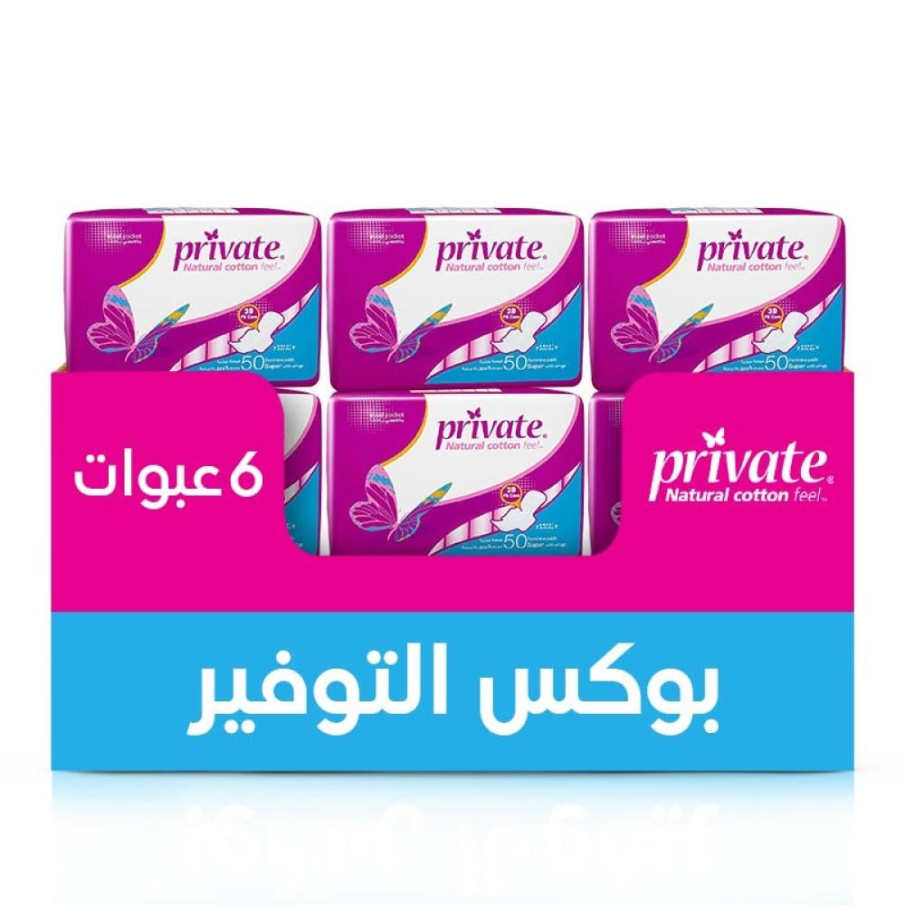 - الفوطة الصحية برايفت ماكسي - سوبر 50 فوطة *6 عبوات | عبوة التوفير