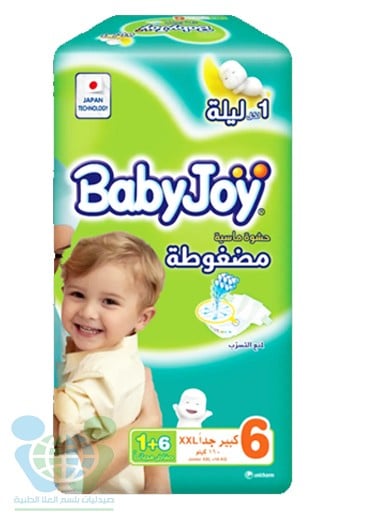 حفاضات بيبي جوي مقاس6 توفر هذه الحفاضات أقصى درجات الراحة والحماية للأطفال النشطين، حيث تتميز بقدرتها الفائقة على الامتصاص ومنع التسرب . بيبي جوي الجديد مطور بالحشوة الماسية ونعومة الحريرالتي تمتص البلل بسرعة وتحجزه بعيدا عن جسم طفلك، لتبقيه جافا وسعيدا طوال اليوم.
