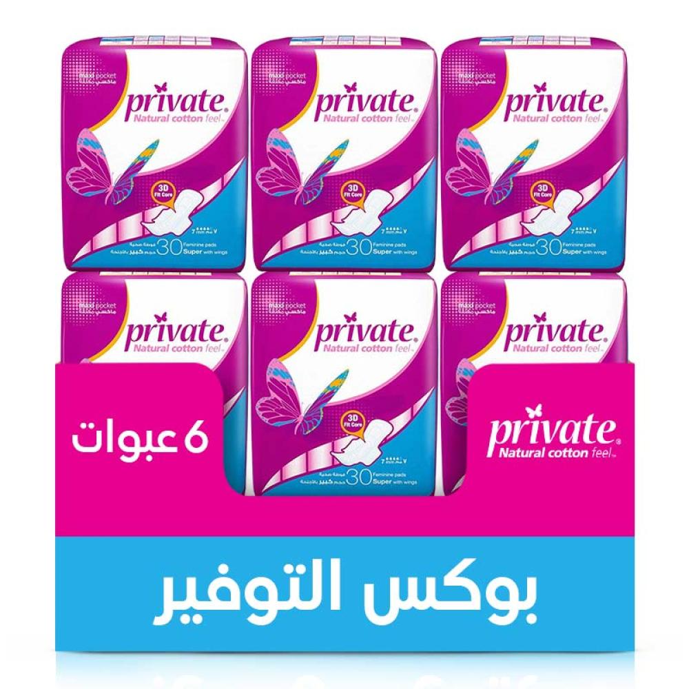 - الفوطة الصحية برايفت ماكسي بوكيت - سوبر 30 فوطة*6 عبوات | عبوة التوفير