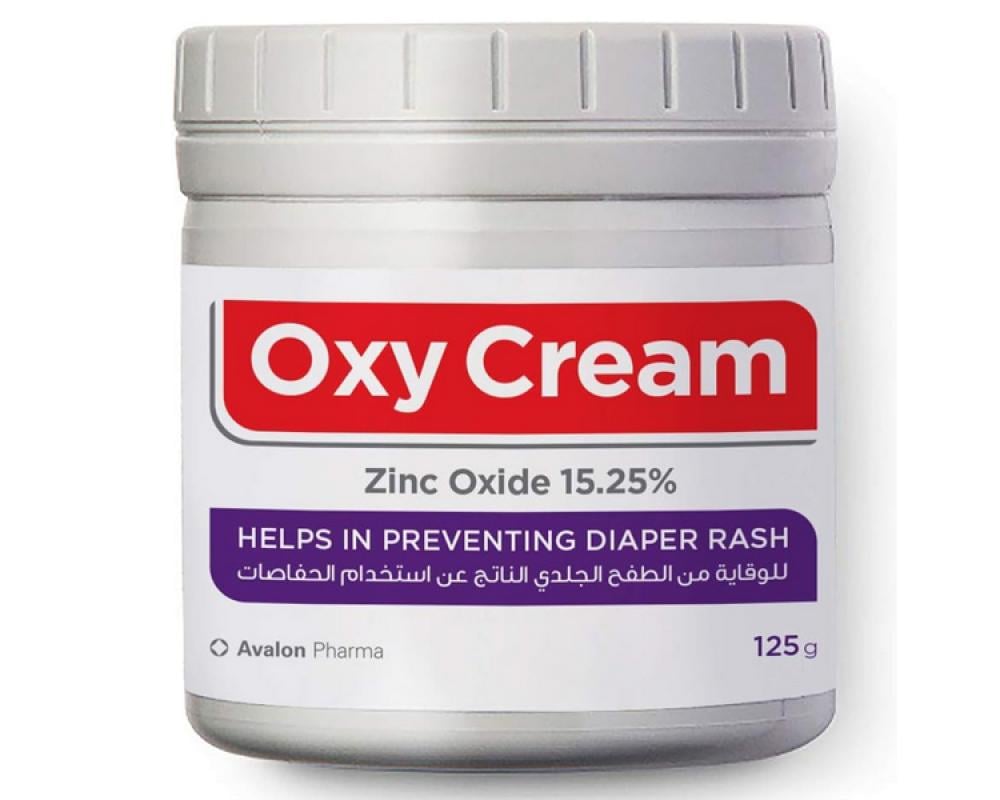 يحتوي كريم اوكسي على أكسيد الزنك بنسبة 15.25% ويساعد في منع الطفح والتهيج الناتج عن الفوط ويعمل على تهدئة بشرة الطفل
